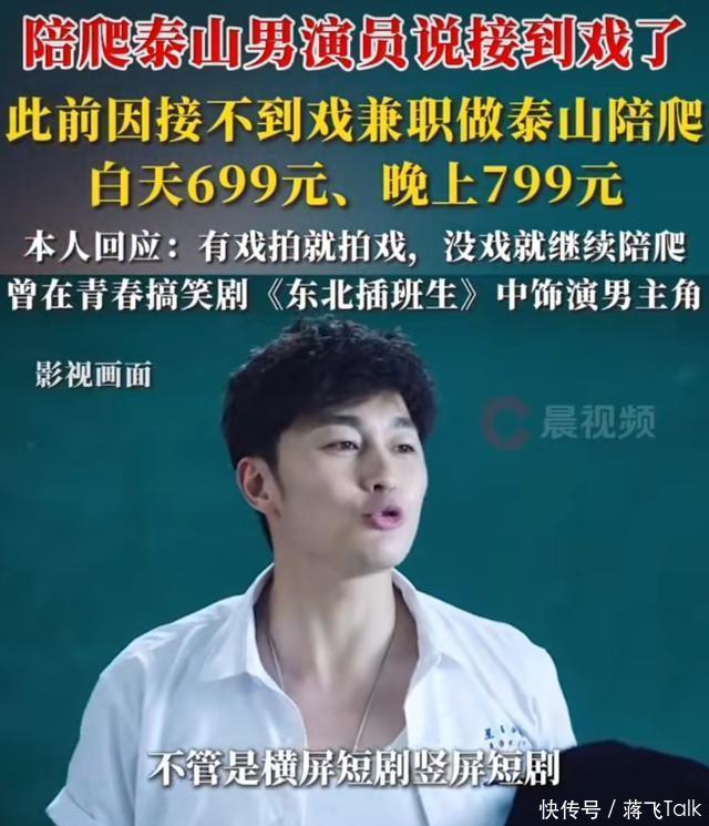 虽然努力自荐仍被拒,因为没有流量,很多剧组都不想用他,没法保证收视率。 面对压力,他没有放弃,为了养活自己,他推出“泰山陪爬”服务:白天场699元/人,夜间场799元/人(含看日出)。 全程提供拐杖、雨伞等装备,免费送水/茶叶蛋,为客户按摩解压、讲笑话,甚至背负体力不支者登顶。